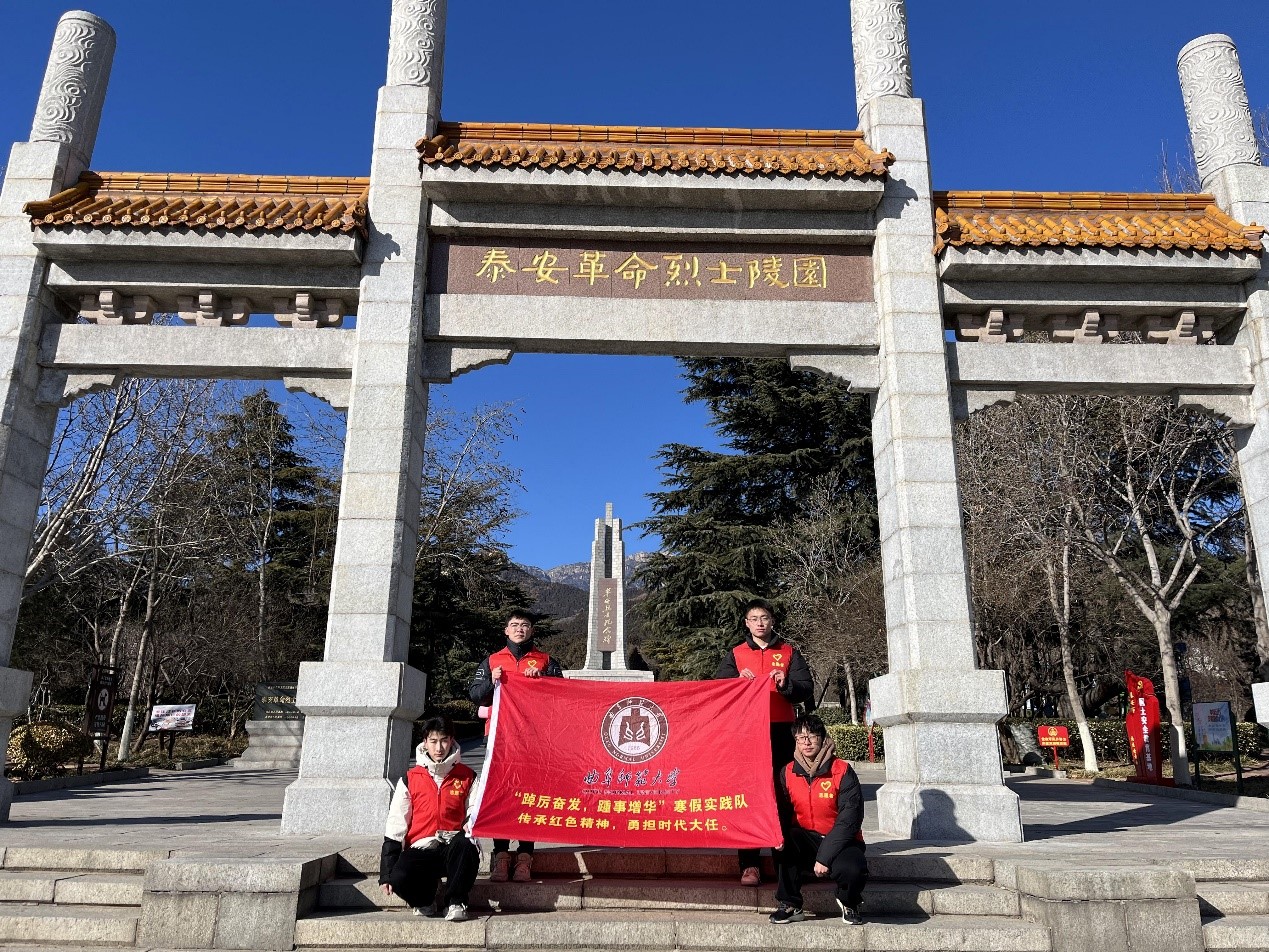 “踔厉奋发,踵事增华”寒假社会实践队于2024年1月18日至1月19日到达山东省泰安市泰安革命烈士陵园,开展以“传承红色基因,感悟爱国精神”为主题的社会实践调研活动。