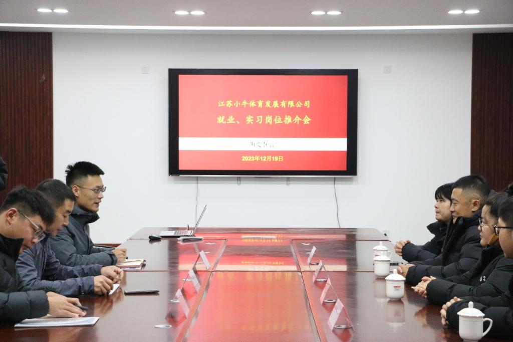 举办“江苏小牛体育就业、实习岗位推介会”。体育学部党委副书记马振华,辅导员栾永鑫、郗来军出席本次会议,2021级实习生参加本次推介会。