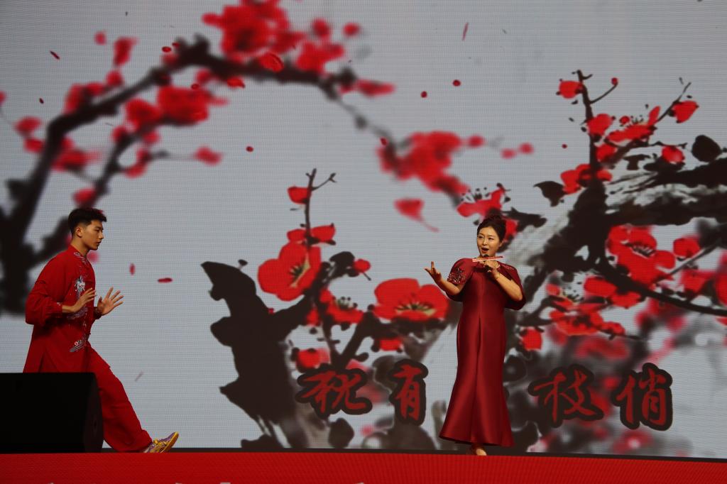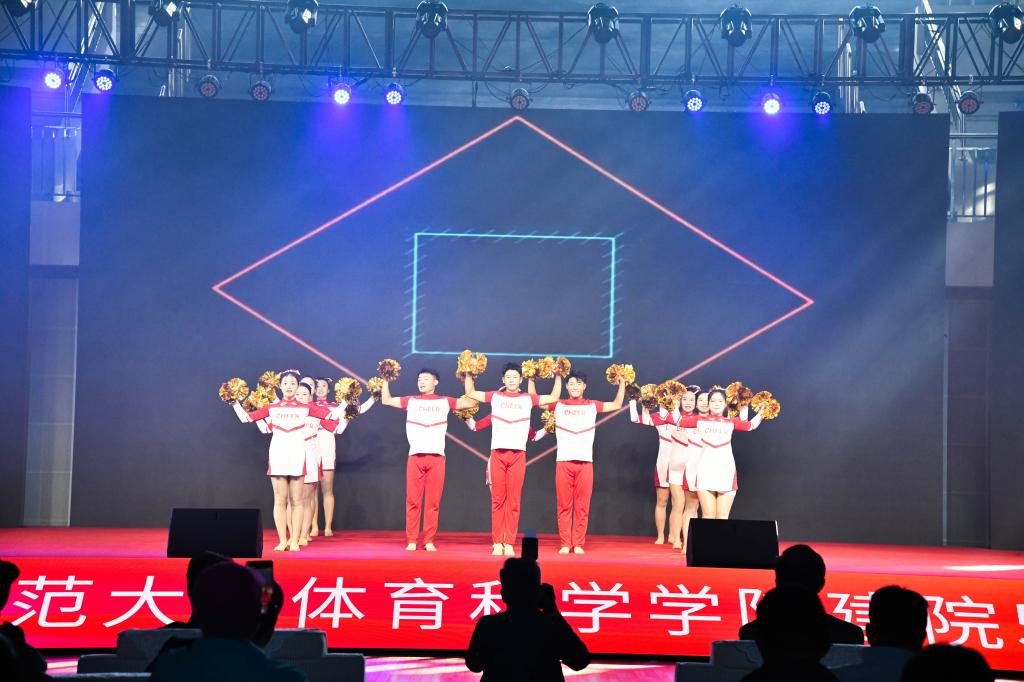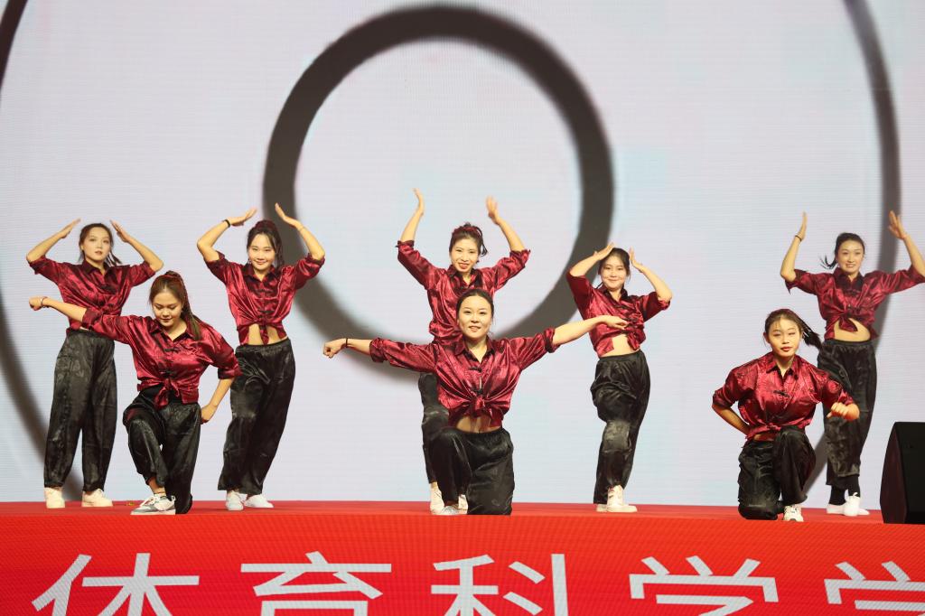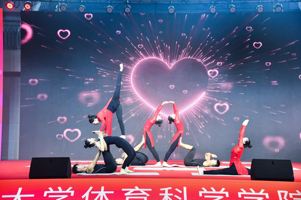 师生代表带来教学成果汇报演出,瑜伽、体操、篮球、足球、武术、射艺、街舞、跳绳等节目精彩纷呈,表达了亚洲杯决赛直播
