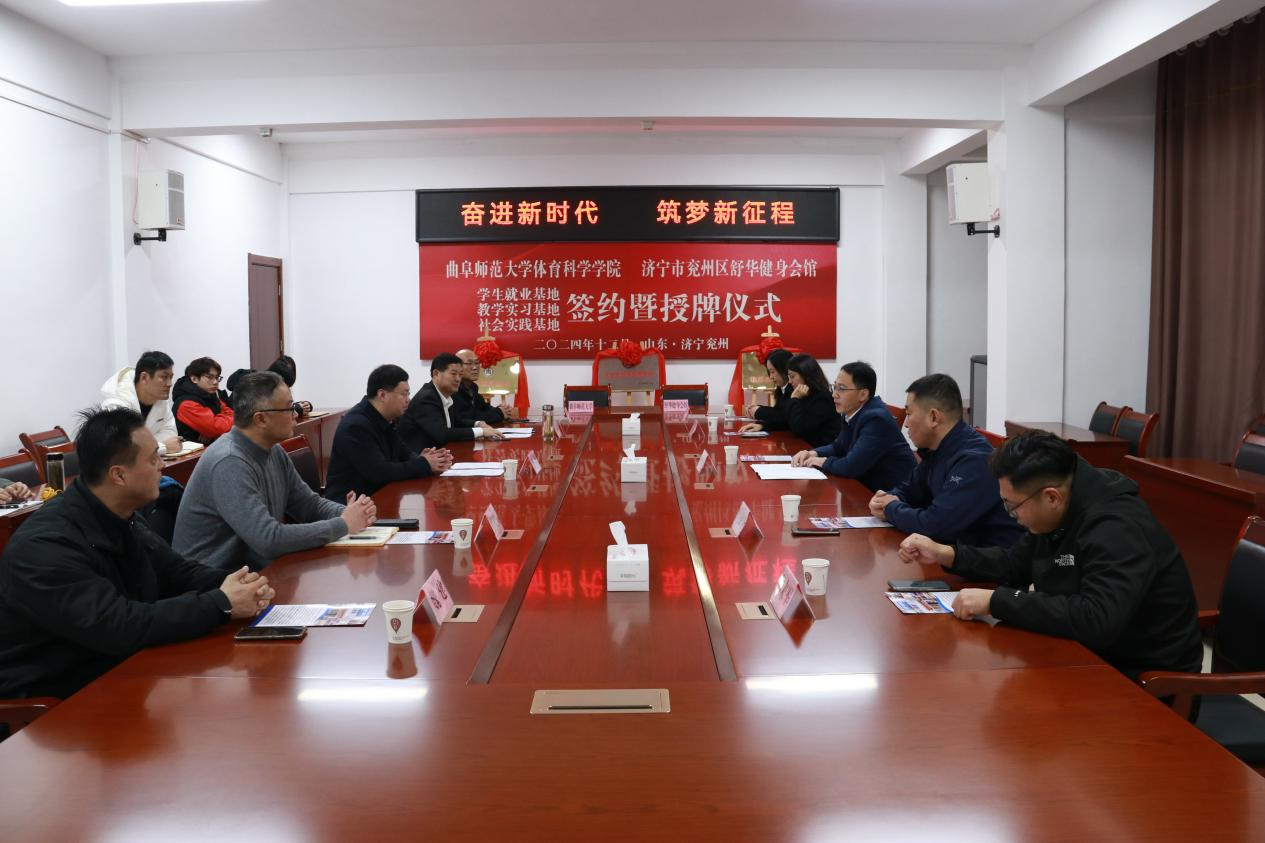 毗邻,具有得天独厚的地理资源合作优势,兖州区全民健身中心(舒华健身会馆)具有良好的体育事业发展基础,为当地培养了大批体育后备人才,并向大专院校及国家、省、市专业运动队输送近500余名专业人才。此次签约暨授牌仪式是下一步开拓校企合作、校地合作的新起点,接下来双方将围绕教育实践、人才培养、校园文化活动等多方面展开深入合作,以制度建设、平台建设、资源建设探索人才培养新模式,共同探索体育发展的新路径,实现优势互补、资源共享、协同发展的新格局。