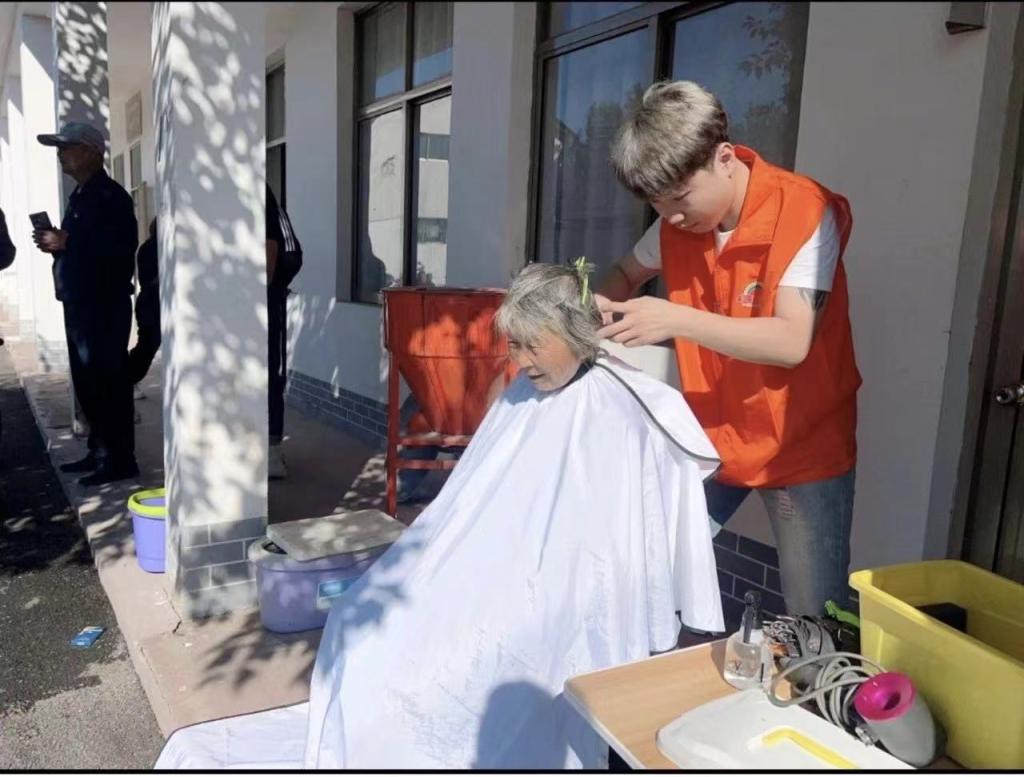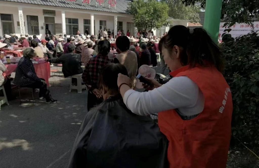 的志愿者们还为村里老人开展爱心义剪活动,用实际行动传递着关爱。出席活动的领导们也温暖老人心,为村里九十岁以上的寿星们发放节日慰问品,送上诚挚祝福。