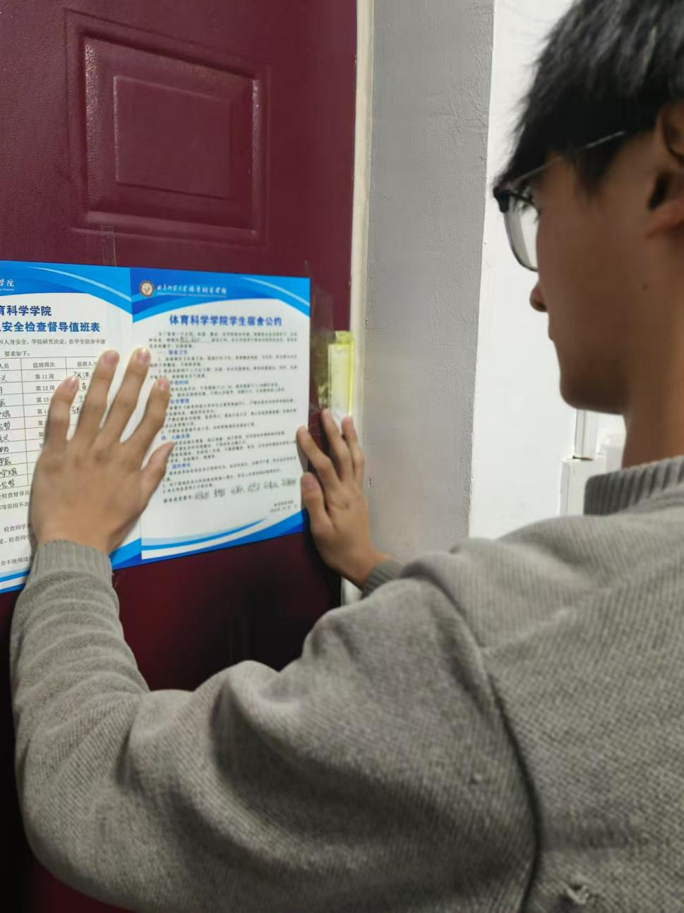 于12月24日组织宿管部全体成员到宿舍进行公寓文明公约宣讲以及张贴公寓文明公约。
