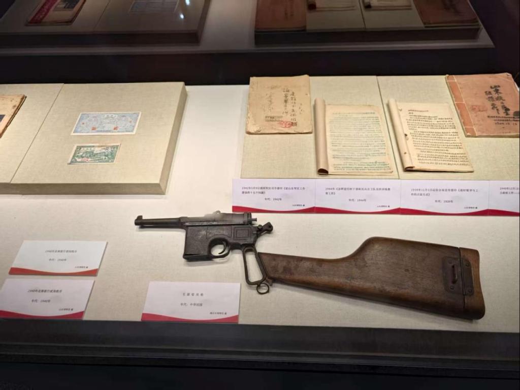 实践队成员们有序参观展览,认真聆听讲解。从早期革命思想传播中陈独秀、李大钊等先驱的探索,到山东地区 “团结抗战 全国模范” 的英勇事迹;从解放战争中南征北战、争夺要地的壮烈征程,到革命文物承载的真实历史记忆,每一块展板、每一件文物都诉说着往昔的峥嵘岁月。
