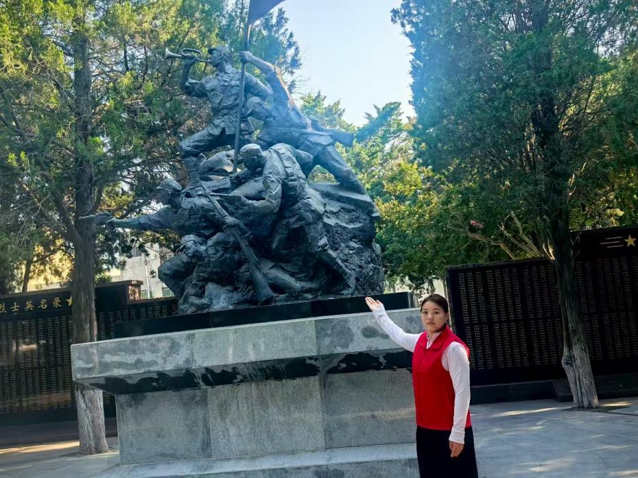 日照烈士陵园承载着厚重的红色历史,其古建风格的大门庄严肃穆,“日照烈士陵园” 匾额诉说着对英烈的敬重。实践队队员踏入陵园,首先来到抗日烈士纪念塔前,塔身铭记着抗战岁月的壮烈。身着红色志愿服的队员,以崇敬之心瞻仰纪念塔,聆听讲解,回溯那段山河破碎却热血抗争的历史,感悟先辈们为民族独立抛头颅、洒热血的坚定信念。