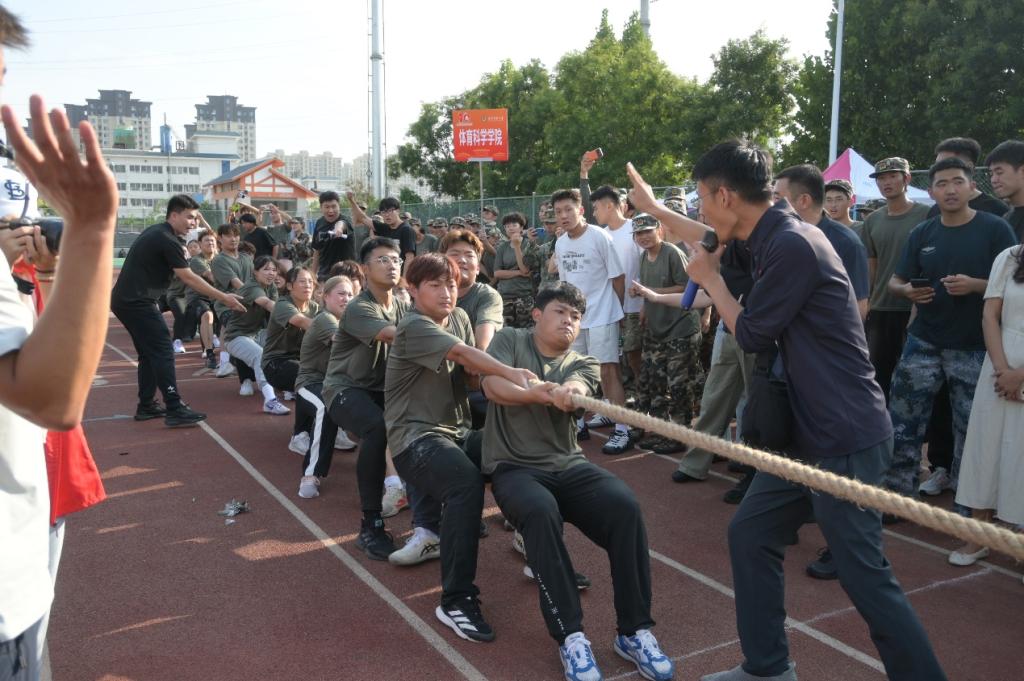 2025年军训拔河比赛拉开帷幕。体育学部党委副书记马振华、亚洲杯决赛直播