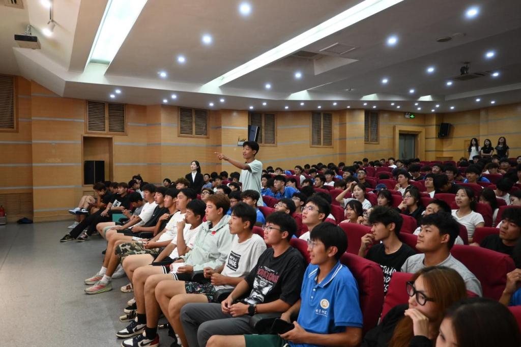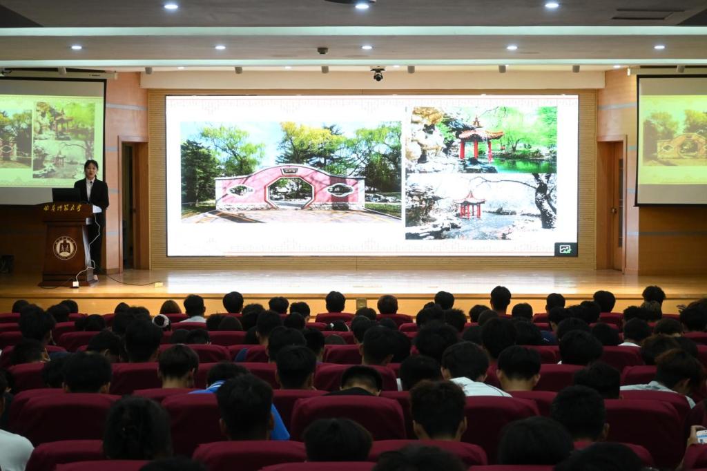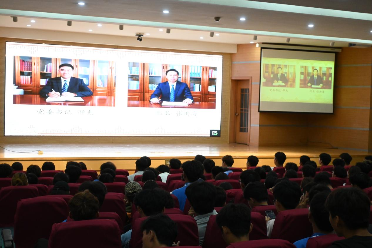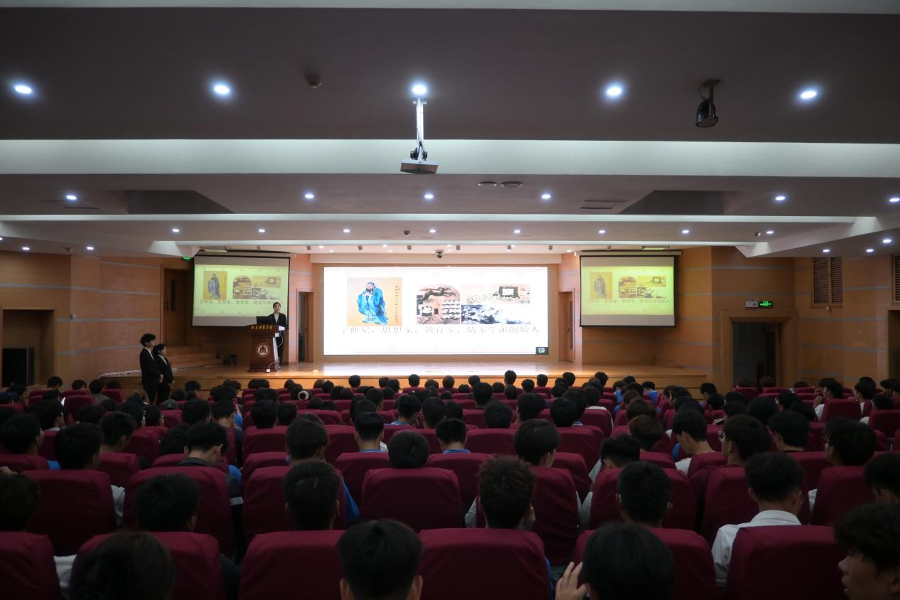 在孔子礼堂组织了一场爱校荣校教育宣讲活动,2025级全体新生参与活动。