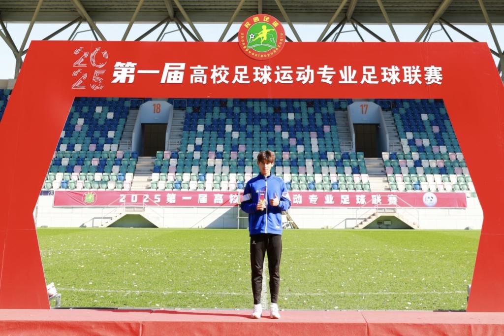 2024级足球运动专业学生封明昊凭借精准的射门技术与出色的战术执行力,在4场比赛中攻入9粒进球,荣膺本届赛事金靴奖。封明昊不仅在赛场上表现出色,在学习中同样勤奋自律,现专业年级成绩排名第四,获院级奖学金及“优秀共青团员”称号。2024年,他代表亚洲杯决赛直播