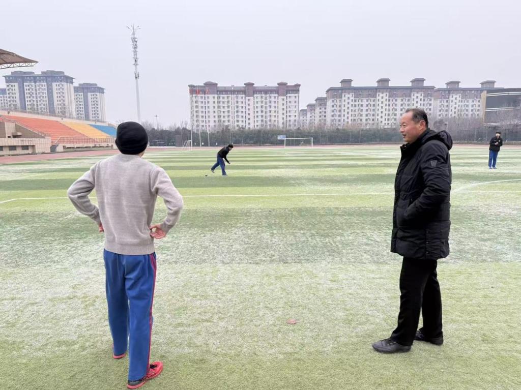 操场上的霜痕未散,却挡不住师生们的热情。特长生们在队员的指导下反复打磨技术,教练们则认真记录下科学训练的细节,校园里处处涌动着青春奋进的气息。