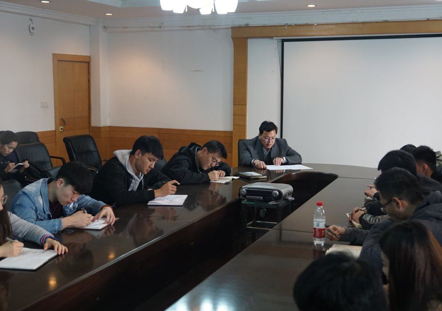 本科生党支部书记展利民向各位党员介绍了2017年度党员组织生活会和民主评议党员工作的指导思想、评议内容、评议方法和步骤,要求每位党员在深入学习“十九大”精神的基础上,对照民主评议的标准,根据《中国共产党章程》规定,结合自身实际,认真总结一年来的思想、工作和学习情况,尤其是在参加组织生活和开展日常工作学习的过程中是否能够充分地发挥党员先锋模范带头作用进行严格认真的自我剖析和自我批评。