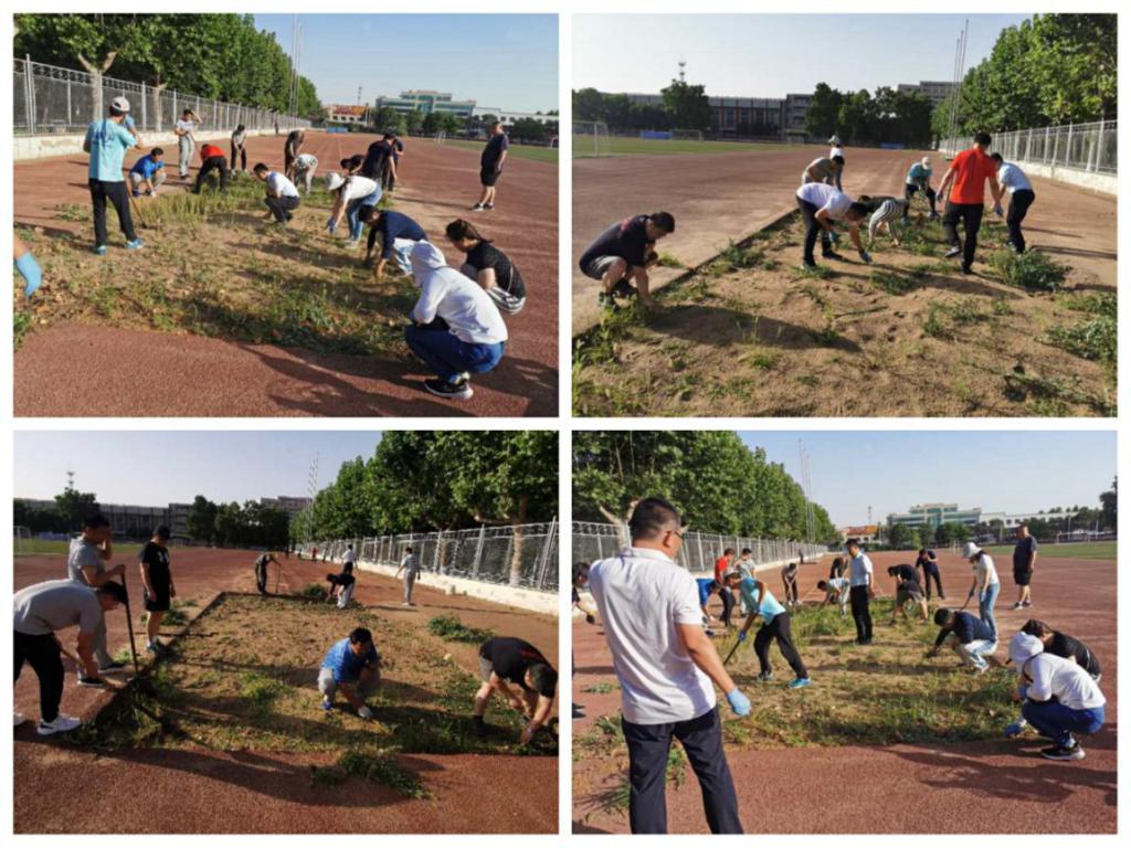 操场杂草清理工作撒下了劳动的汗水,先后了清理操场内外地带的杂草、;落叶,并将清理后的杂草、落叶统一收集回收。炎炎烈日下,经过一下午的辛勤劳动,终于完成预订的任务,使整个操场的面貌焕然一新。