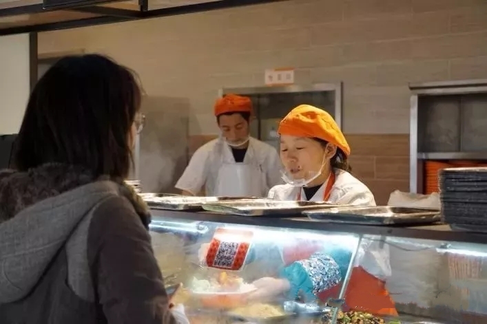 团委副书记梁贺涵,辅导员李士建、李峰、刘京与学生共进午餐。