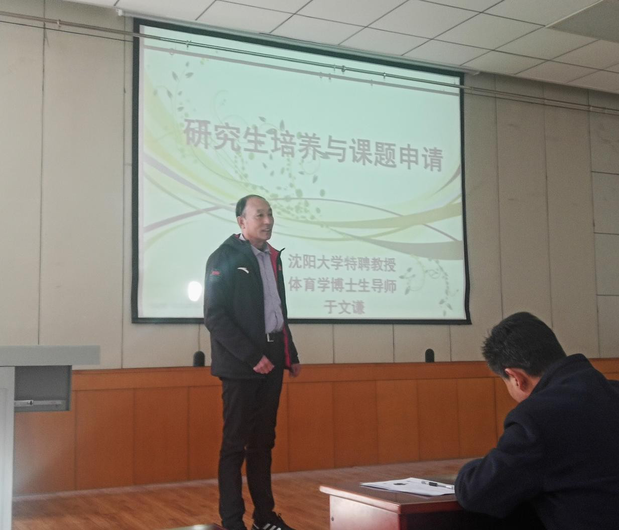 的师资力量以及近些年取得的科研成果给予了充分肯定。讲座从六个方面向大家解读了研究生培养问题:一是如何读好研究生。要明确读研究生的“目的”,是为了获得高学历考取博士、出国留学还是解决就业问题。二是明晰硕士研究生的三大任务:练好术科、搞好科研、学好外语。三是选择导师,明确自己身份。明确导师在研究生生活中的作用。四是学会坐得住。一个人只有坐得住,静下来,沉进去,方能学进去。五是严格要求自己,利用好节假日。珍惜当下的时光,利用余暇时间充盈自己。六是研究生的论文选题。根据自己的专项和熟悉的领域选题目、用外学科理论解释体育问题、选择热点问题、根据国家社科基金指南选题。