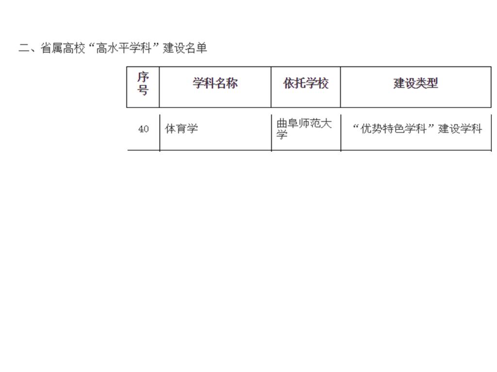 高水平学科建设是省教育厅为贯彻落实省委省政府关于推进全省高等教育高质量发展的决策部署,进一步优化高校学科布局,切实提升学科综合实力和竞争力而推出的重要举措。经过两轮评审,确定了省属高校“高水平学科”建设项目51个,体育学科仅此一项。