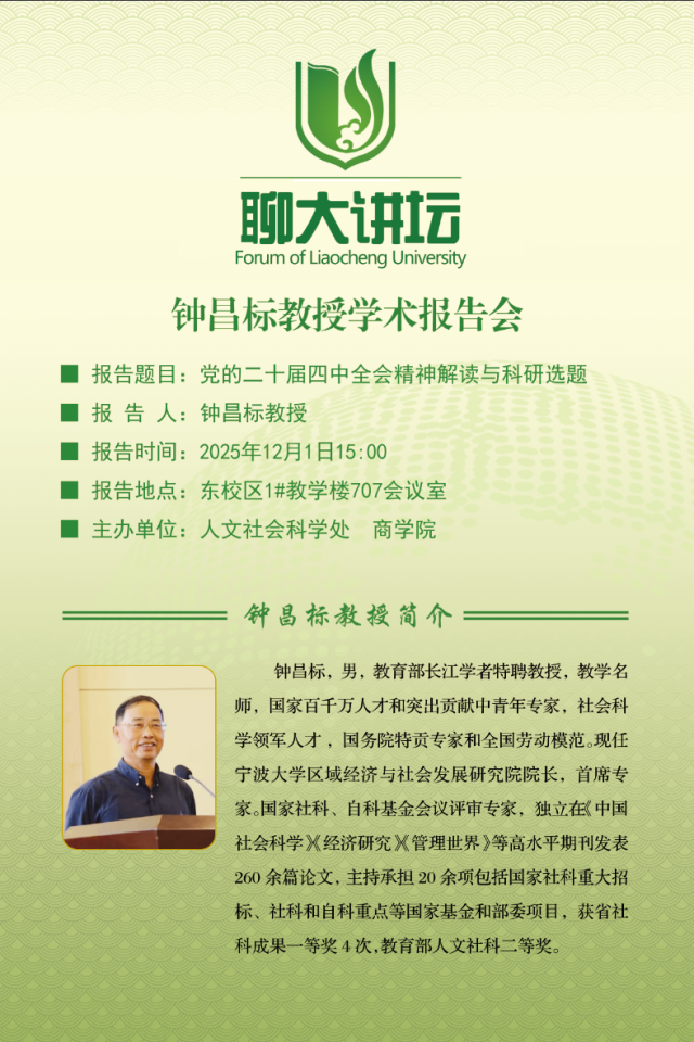 亚洲杯决赛直播 讲坛:钟昌标教授学术报告会