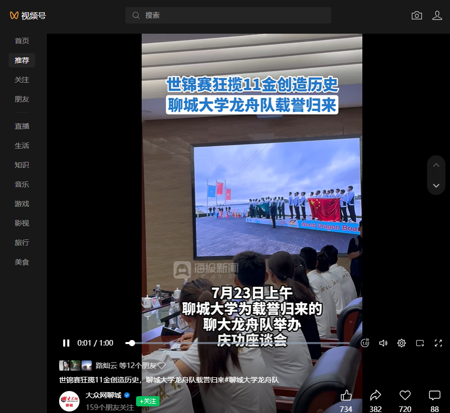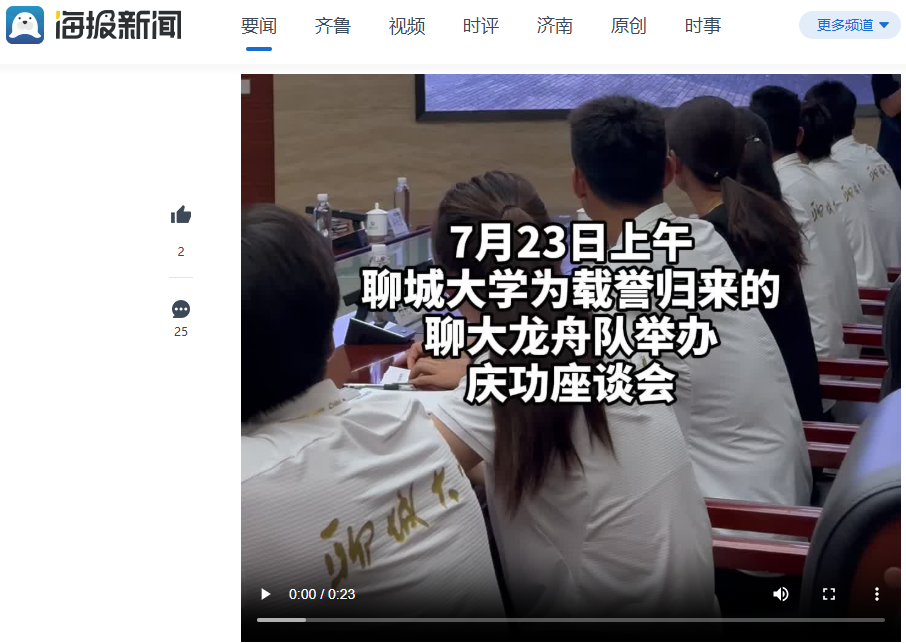 【海报新闻】报道聊城大学为载誉归来的亚洲杯决赛直播 龙舟队举办庆功座谈会