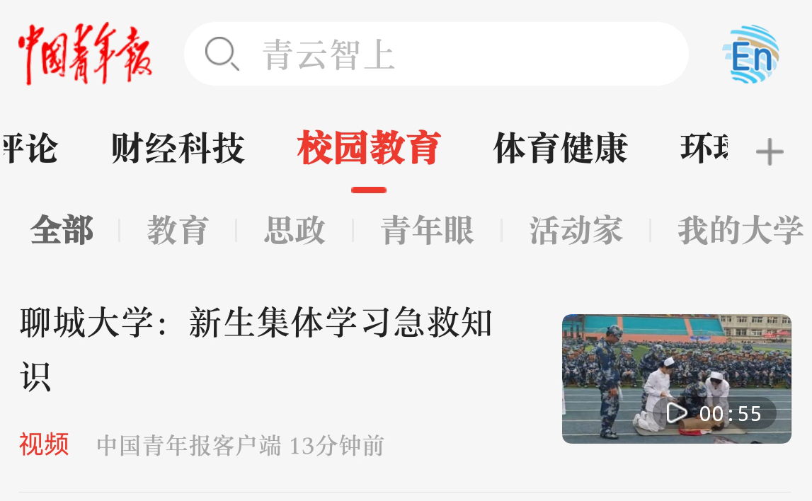 【中国青年报(客户端)】报道聊城大学:新生集体学习急救知识