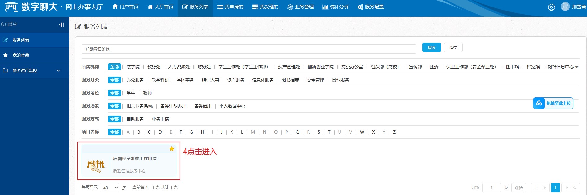 关于启用“后勤零星维修工程申请” 网上办事流程的通知