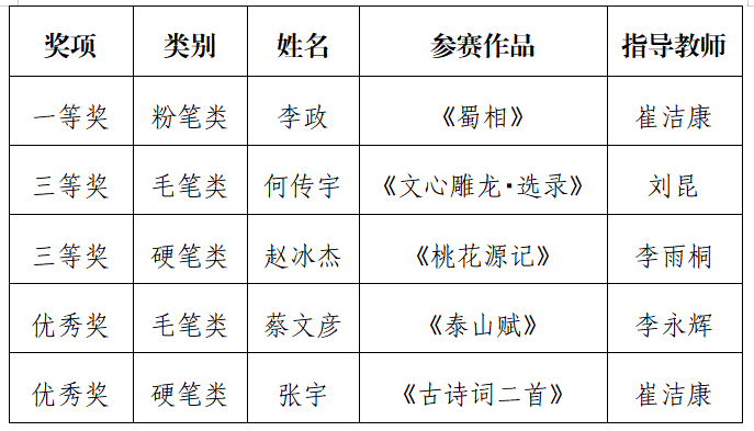 12月3日,第七届中华经典诵写讲大赛“笔墨中国”汉字书写大赛全国总决赛拟获奖名单正式公示,亚洲杯决赛直播 学子表现优异,共斩获1项一等奖、2项三等奖及2项优秀奖。